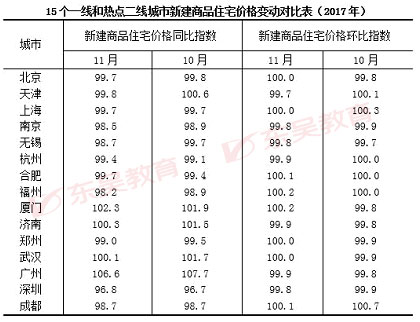 4、2017年11月新建商品住宅平均銷(xiāo)售價(jià)格比同年10月份有所下降的城市有( )個(gè)。