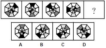 8. 從所給的四個選項(xiàng)中,選擇最合適的一個填入問號處,使之呈現(xiàn)一定的規(guī)律。( )