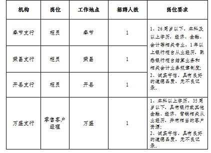 重慶三峽銀行股份有限公司是經中國銀監會批準,設立在重慶直轄市的股份制商業銀行。成立以來,各項業務迅速發展,經營穩健。截止2014年末,在全市擁有營業網點67個,全行資產總額突破1000億元,各項存款余額679億元,各項貸款余額268億元,利潤總額17.6億元。因發展需要,現招聘支行柜員、客戶經理數名,我們誠邀有志有識之士,共創輝煌的明天!
