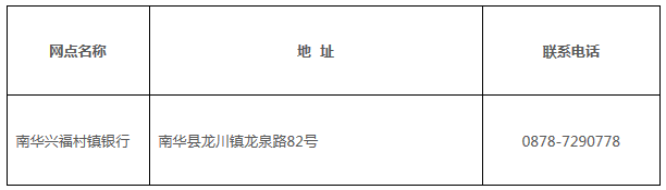 下載打印并填寫《南華興福村鎮銀行工作人員應聘報名表》,核對完整、無誤后送至以下報名點: