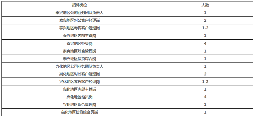 根據業務發展需要,現誠邀社會各界勇于接受挑戰、德才兼備的人才加盟,共同開拓常熟農商銀行泰州分行美好未來。具體招聘事項如下: