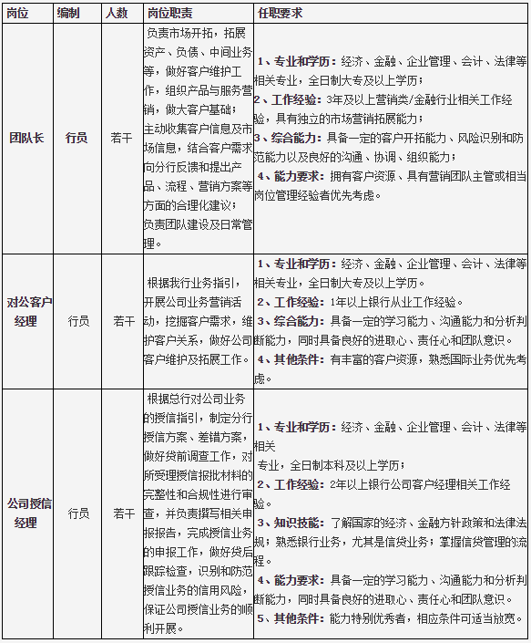 韶關分行現有營業網點一個、自助銀行一個,在建支行一個。為滿足分行業務發展需要,現誠邀社會金融英才加入!