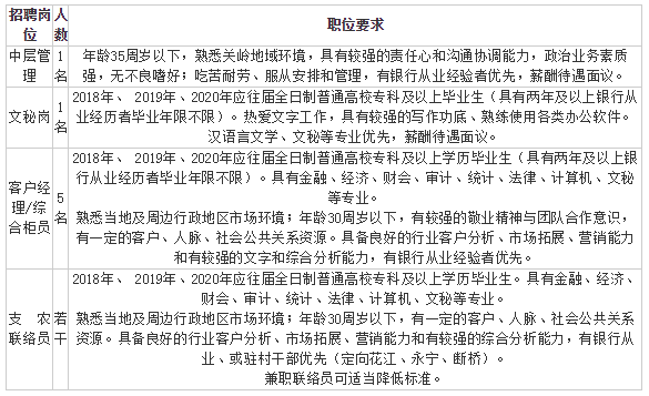 備注:客戶經(jīng)理綜合素質(zhì)突出、有豐富客戶資源、人脈資源和社會(huì)公共關(guān)系資源者,上述職位要求可適當(dāng)放寬條件。