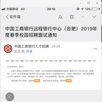 2019年中國(guó)工商銀行遠(yuǎn)程銀行中心(合肥)春季校園招聘面試通知