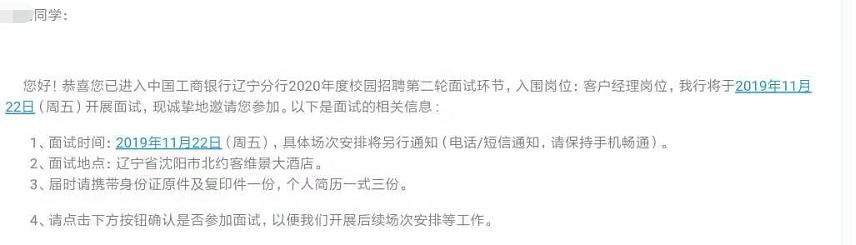 2020年中國工商銀行遼寧分行校園招聘第二輪面試通知