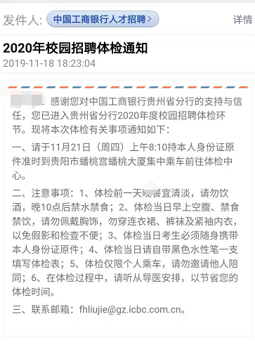 2020年中國工商銀行貴州分行校園招聘體檢通知