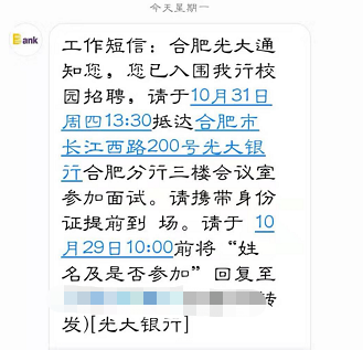 2020中國光大銀行合肥分行校園招聘面試通知公告