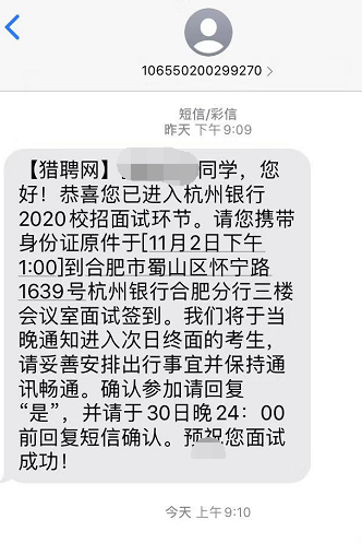 [安徽]2020年杭州銀行合肥分行校園招聘面試通知