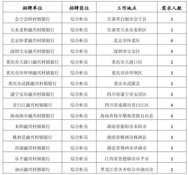 (六)能夠吃苦耐勞,樂于扎根縣域,熱愛農村金融事業的人員優先考慮;