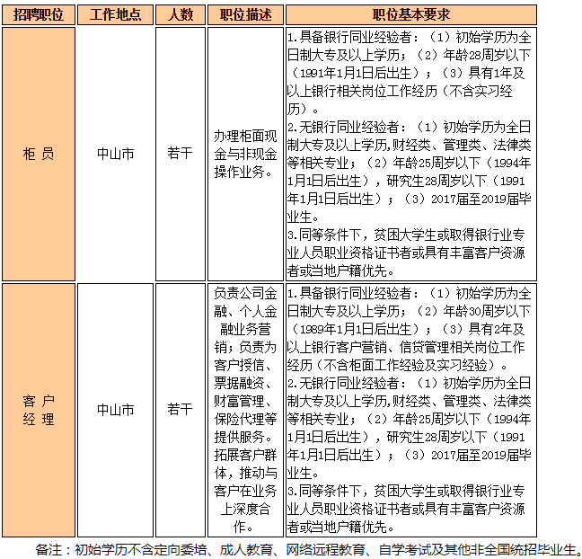 2019年中山小欖村鎮(zhèn)銀行社會(huì)招聘公告