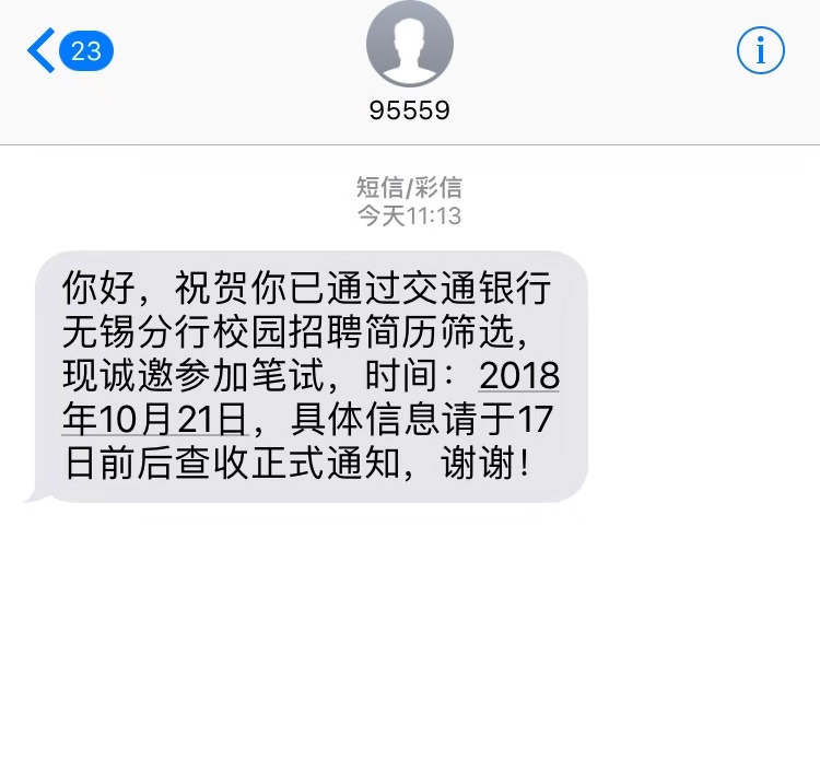 [江蘇]2019年交通銀行無(wú)錫分行校園招聘筆試通知