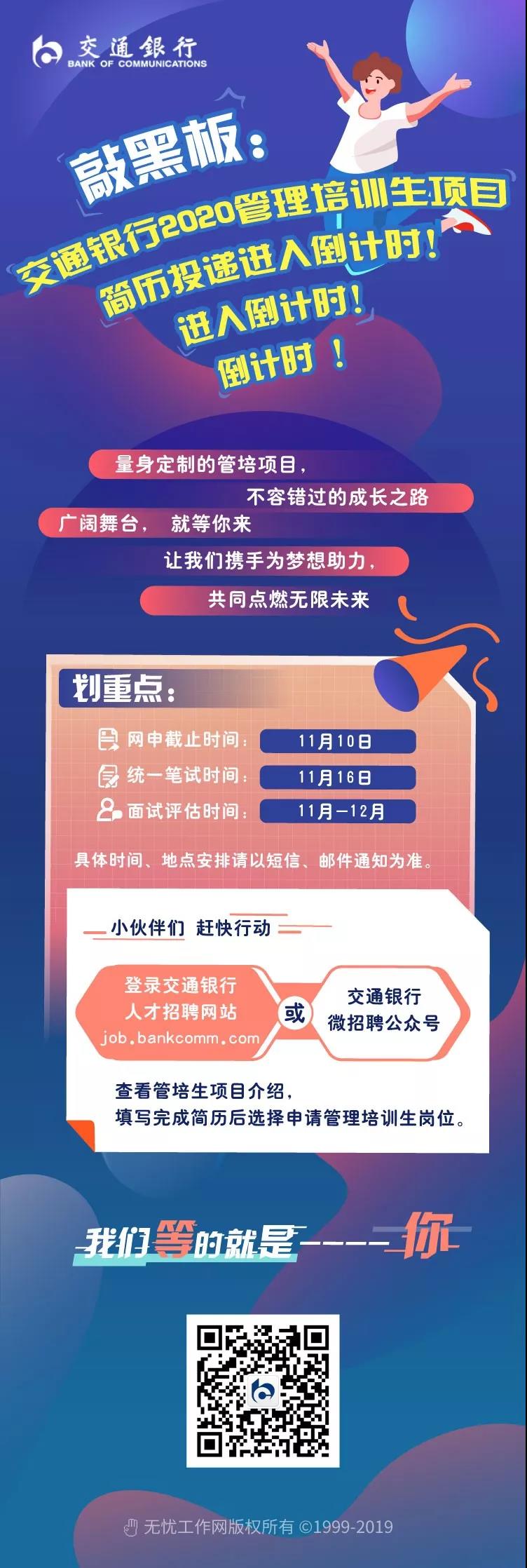 [全國]2020交通銀行管理培訓生簡歷投遞進入倒計時公告