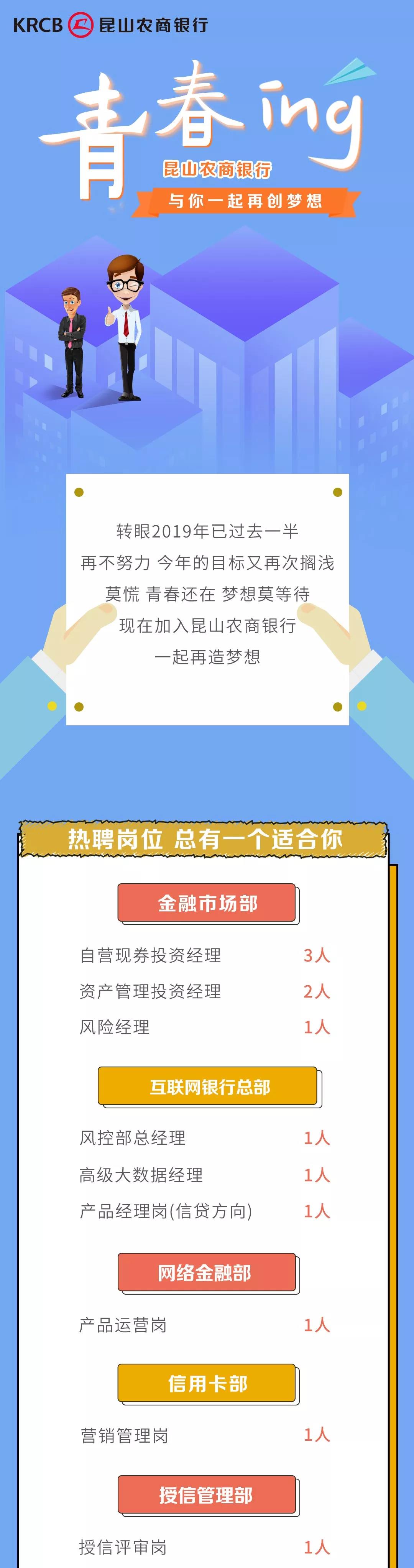 [江蘇]2019年昆山農商銀行社會招聘公告(8.02)