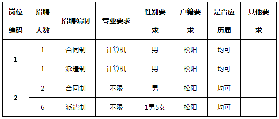 (1)年齡、戶籍要求:本科畢業(yè)生在26周歲及以下(1994年1月1日以后出生);碩士研究生在30周歲及以下(1990年1月1日以后出生);應(yīng)聘人員需為松陽(yáng)戶籍。