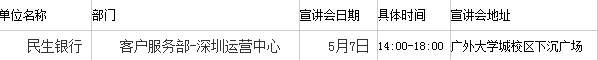 [廣東]2016民生銀行客戶服務部深圳運營中心實習生招聘宣講會