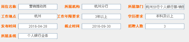 35周歲及以下,全日制本科及以上學歷,3年及以上銀行相關工作經驗;具有較強的營銷策劃和市場推廣能力,較強的表達能力、溝通協調能力、團隊合作能力,