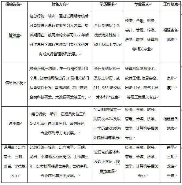 1. 愛國守法,品行良好,認同泉州銀行企業(yè)文化,愿意在金融領域長期發(fā)展。