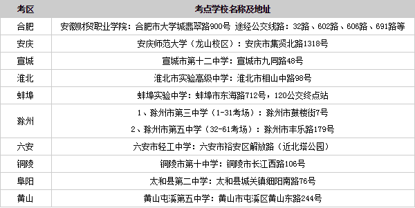 [安徽]2016年安徽農(nóng)村商業(yè)銀行招聘各考區(qū)考點(diǎn)地址
