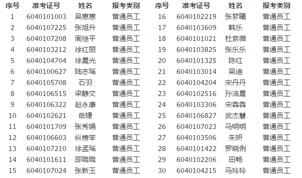 根據《淮北農商銀行2016年員工招聘公告》,依據考生筆試成績從高分到低分(考生可登錄安徽農金招聘系統自行查詢筆試成績,本行不再另行電話通知)按照1:1.5比例確定面試入圍人員名單,2016年我行面向社會招聘普通員工面試入圍分數線為"64分"。現將面試入圍人員名單公示如下: