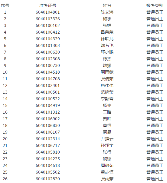 現將面試入圍人員予以公示:共26名(最后一名入圍面試人員筆試成績有并列,一同入圍面試),具體名單見附件。
