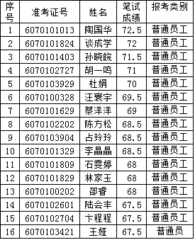 一、面試入圍人員:共16名(最后一名入圍面試人員筆試成績有并列,一同入圍面試),具體名單見附件。