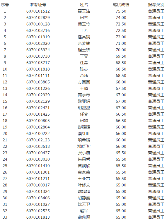 一、面試入圍人員:共33名(最后一名入圍面試人員筆試成績有并列),具體名單見表。