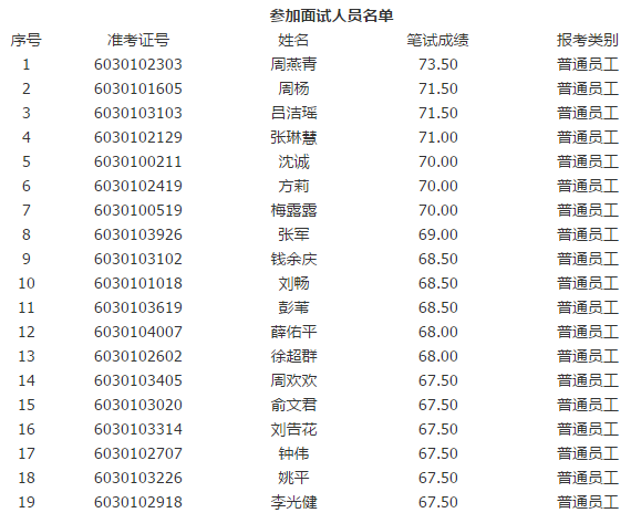 一、面試入圍人員:共19名(詳細名單見下表)。