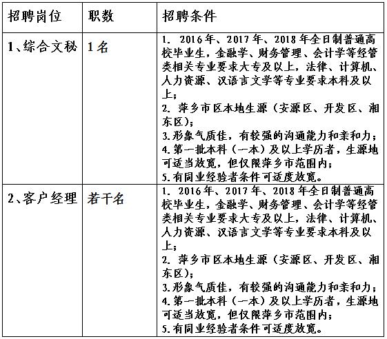 萍鄉(xiāng)安源富民村鎮(zhèn)銀行股份有限公司(以下簡稱“安源富民村鎮(zhèn)銀行”)是經(jīng)中國銀監(jiān)會批準(zhǔn)的新型股份制商業(yè)銀行。目前,全行轄屬營業(yè)部、東大支行、新區(qū)支行、高坑支行、青山支行、開發(fā)區(qū)支行、后埠支行等7個營業(yè)網(wǎng)點(diǎn)。因業(yè)務(wù)發(fā)展需要,現(xiàn)面向社會公開招聘優(yōu)秀人才若干名。
