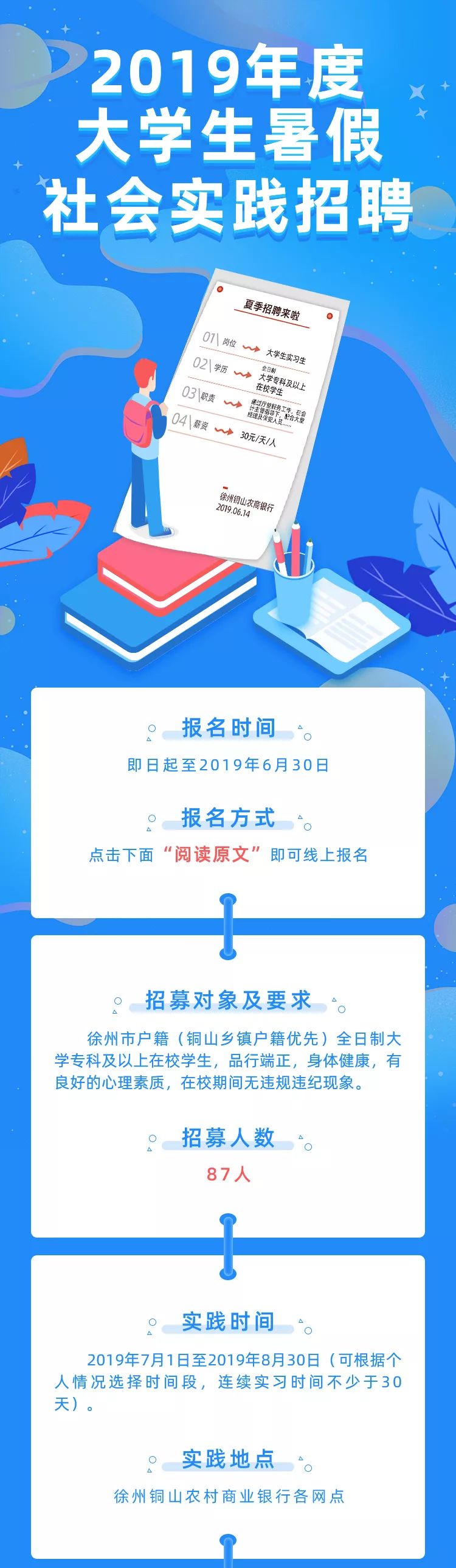 [江蘇]2019年徐州銅山農商銀行大學生暑假社會實踐招聘公告