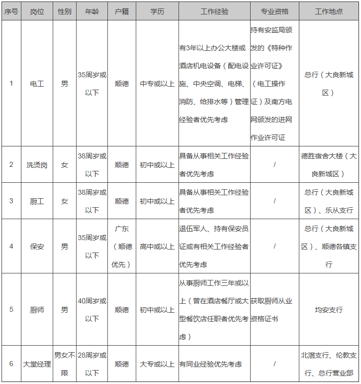 由于業務發展需要,我行對外誠聘電工等非行員崗位,具體要求如下: