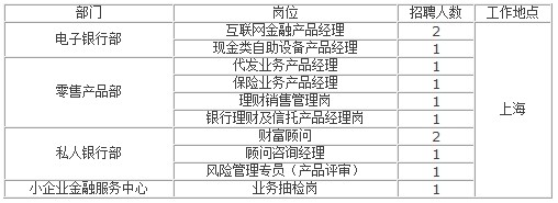 應聘條件:35周歲以下;全日制本科及以上學歷,3年以上相關工作經驗;具有商業銀行銀行卡及支付結算類相關工作經驗,以及經濟、金融等相關專業背景者優先。