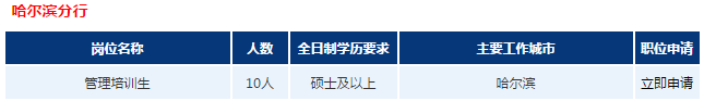 2、總行“管理培訓生”由總行直接招錄,培養(yǎng)方向為中高級管理人才。