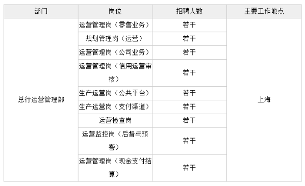 2019浦發(fā)銀行總行運(yùn)營(yíng)管理部社會(huì)招聘公告