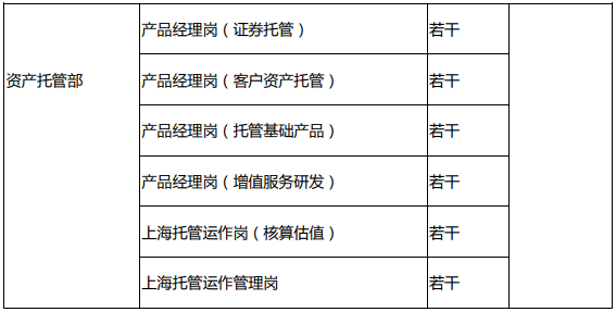 應聘條件:35周歲以下;計算機、信息技術、金融工程、數量經濟學、財務等相關專業全日制本科及以上學歷;2年以上銀行、證券、基金等金融行業工作經驗;從事過托管系統開發或托管產品研發者、托管證券類產品清算及核算運營者優先。
