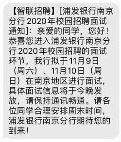 2020浦發銀行南京分行校園招聘面試通知