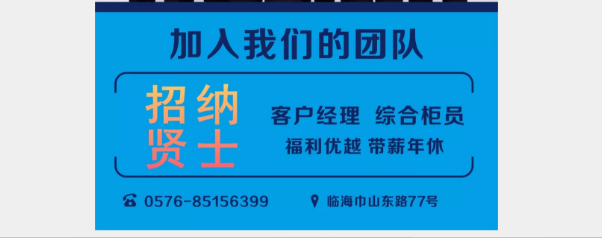 [浙江]2019年臺州銀行北片區域社會招聘公告