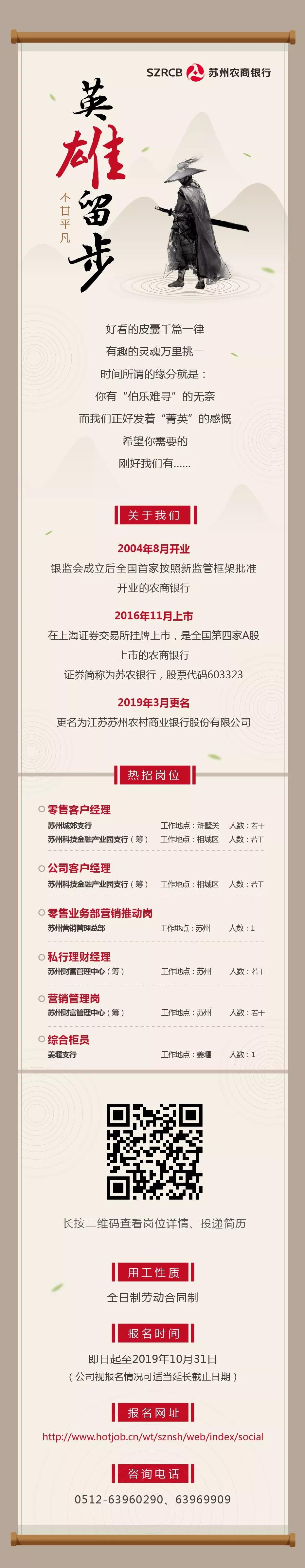 [江蘇]2019蘇州農商銀行社會招聘信息公告