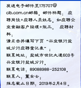 [江蘇]2019年興業銀行鹽城分行招聘公告