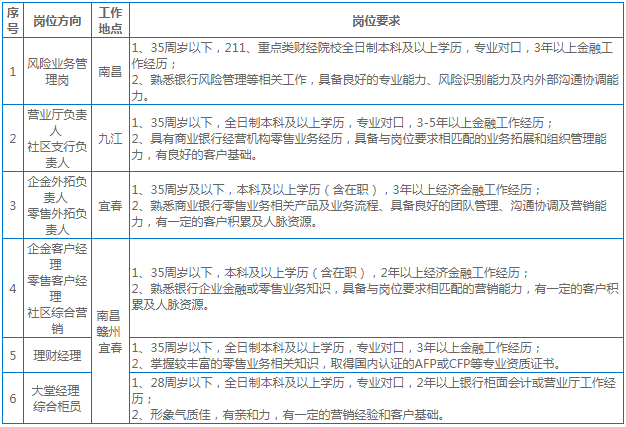 地址:江西省南昌市紅谷灘新區(qū)紅谷中大道1568號(hào)漢港凱旋中心,興業(yè)銀行南昌分行21樓人事監(jiān)察部招聘組。