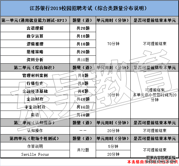 江蘇銀行校園招聘考試具體題量分布說明如下: