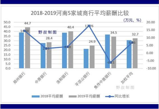 2019年度,洛陽銀行年報披露其12名內部高管人員合計稅后薪酬533.63萬元,人均稅后年薪44.47萬元;中原銀行稅前年薪最高4名關鍵高管人員的上下限為300萬元至400萬元,明顯還高于鄭州銀行。