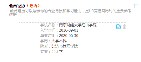 這里暫時(shí)沒有看見是否需要填寫高中以及填寫順序,如果你是本科可以直接填寫一個(gè)本科教育經(jīng)歷。
