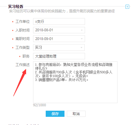 同時(shí)也是因?yàn)楹芏鄬W(xué)生沒有正規(guī)的實(shí)習(xí)只有一些零散的兼職活動(dòng),這里的話就盡量寫和同學(xué)所報(bào)銀行崗位相關(guān)的一些兼職經(jīng)歷,描述過程中注意用詞盡量用數(shù)據(jù)和技能說話。