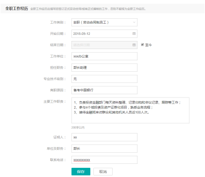 這里證明人同事、領導都可以,如果家長是行內的不要填家長,附件可以填實習證明,沒有的話就空著,不是必填項。