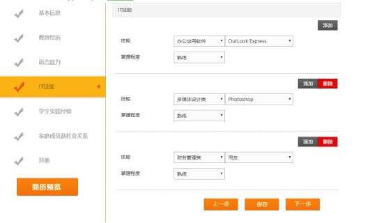 這里的IT技能分的較細,基本上大家office辦公都會,然后一些財會專業的對于財務管理軟件也有一定操作也可以選擇。