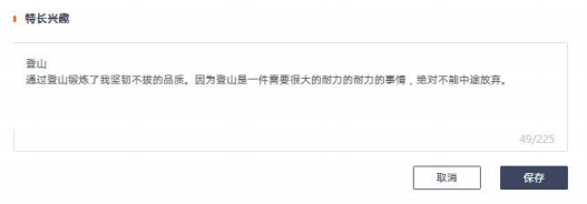 不建議寫聽歌、閱讀之類的特長興趣,如果沒有特別的特長興趣的話,運動是一個不錯的選