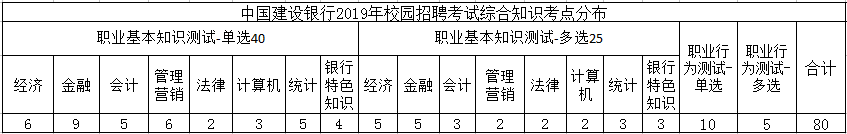 建設銀行綜合知識考試內(nèi)容:職業(yè)行為測試、建設銀行特色知識、金融(金融學和商業(yè)銀行)、經(jīng)濟學、計算機、管理營銷、會計、法律統(tǒng)計學等等。