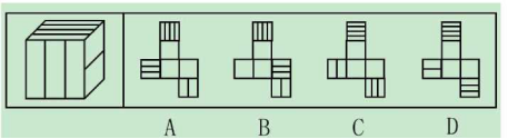 43.下列選項為紙盒外表面的展開圖,左邊紙盒由其折疊而成的是( )。