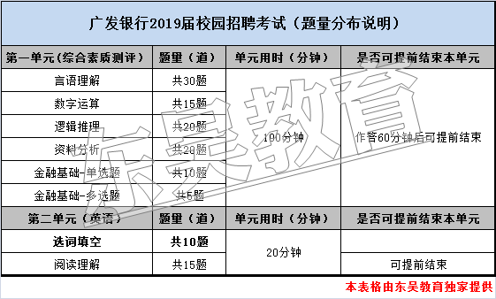 廣發銀行校園招聘考試具體題量分布說明如下: