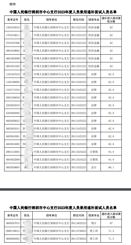 附件:中國人民銀行深圳市中心支行2023年度人員錄用遞補面試人員名單